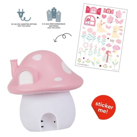 Lampka ma kształt grzybka i jest idealna dla dzieci, które lubią trochę światła podczas snu.