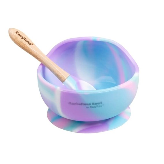 EasyTots - zestaw silikonowa miseczka z przyssawką oraz łyżeczką silikonowo bambusową