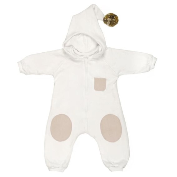 Bawełniany kombinezon całoroczny z kapturkiem zakończonym wesołym pomponikiem w stylu BOHO dla Najmłodszych zasuwany na bezpieczny suwak.
