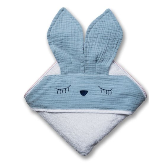 Hi Little One ręcznik okrycie kąpielowe z kapturem 100x100 cm SLEEPY BUNNY Baby Blue