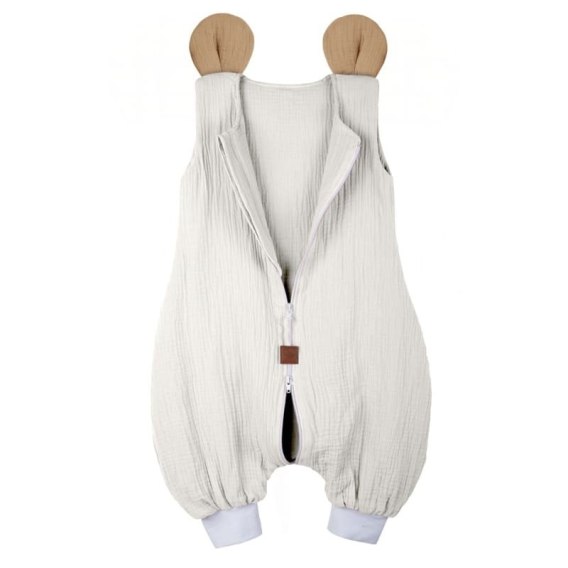 Hi Little One śpiworek do spania z nogawkami dla Niemowlaka TOG 1,0 BIO muślin MOUSE White/Beige roz S