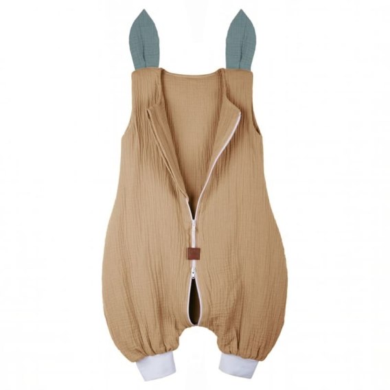 Hi Little One śpiworek do spania z nogawkami dla Niemowlaka TOG 1,0 BIO muślin SLEEPY BUNNY Beige/Tiffany roz S