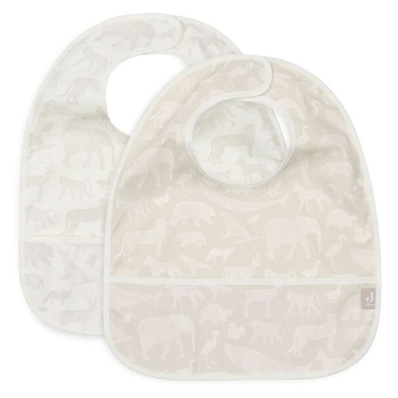 Jollein 2 śliniaki wodoodporne z kieszonką ANIMALS Nougat