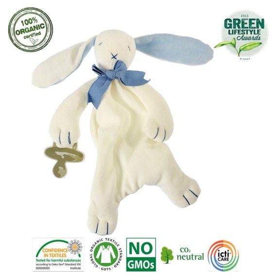 Króliczek wykonany jest z super miękkiej certyfikowanej 100% BIO bawełny organicznej GOTS.